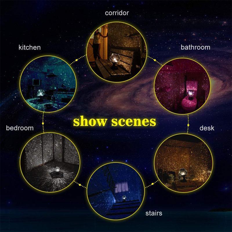 Atmosphere: A relaxing and comfortable atmosphere can be created by this starry sky star projector lamp for your kid, party, and lover.